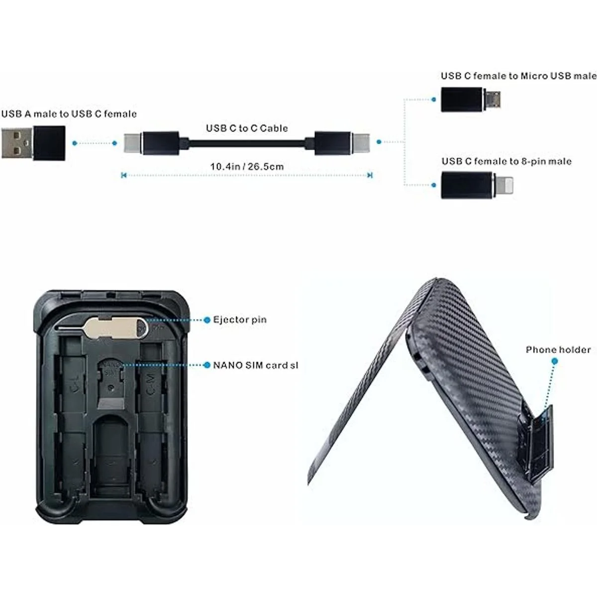 Adecuado para tu teléfono: un pin de extracción de tarjeta SIM y una ranura de almacenamiento para tarjeta nano SIM te ayudan a cambiar y almacenar tu tarjeta SIM fácilmente. La caja de cables se puede ampliar en un soporte para teléfono móvil