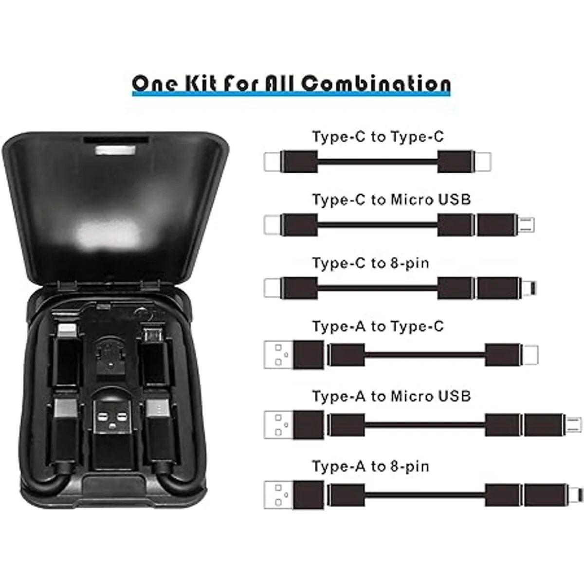 Cable de carga y transferencia de datos USB tipo C a C con 3 adaptadores USB, juego de combinación en funda de tamaño de tarjeta de crédito