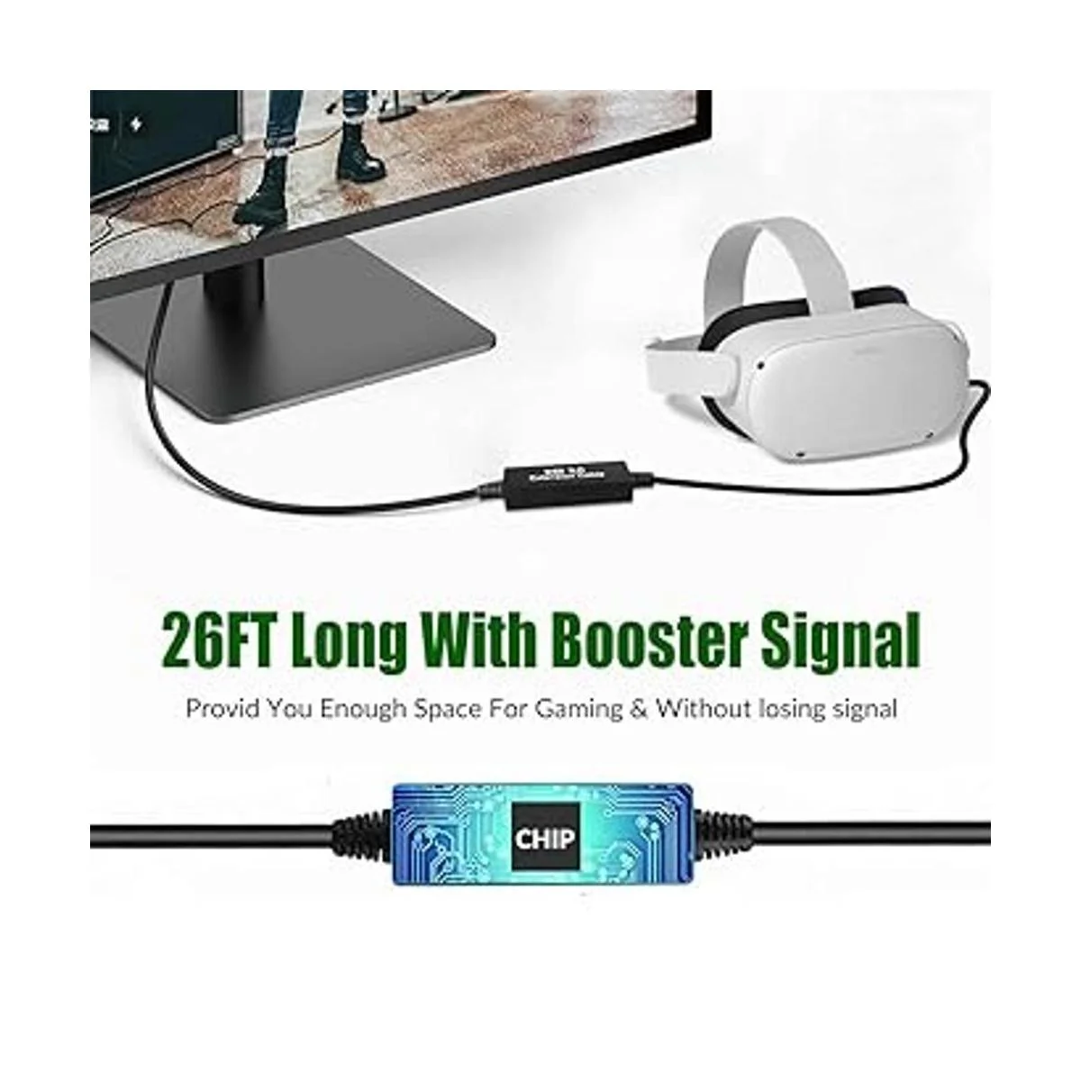 Compatible con accesorios Oculus Quest 2: cable de enlace de 26 pies con amplificador de señal conecta el Quest2/Quest a un PC de juego para que puedas jugar todas las aplicaciones Rift y juegos de Steam VR, proporcionando un montón de espacio para juegos de PC VR