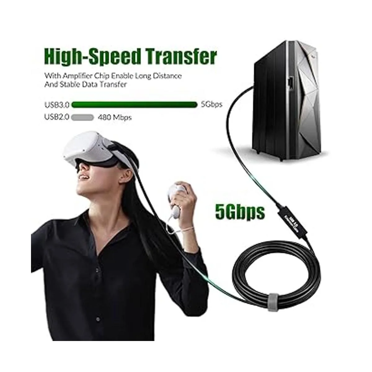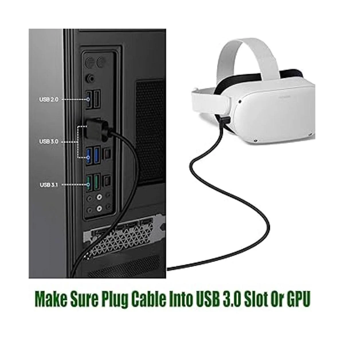 Excelente rendimiento: prueba de compatibilidad Oculus quest 2, velocidad de transferencia de datos de más de 1000 Mbit/s, para una mejor y suave experiencia de juego de realidad virtual, ten en cuenta al conectar al PC: asegúrate de conectar el cable de datos al USB 3.0 en la placa base o ranura de GPU