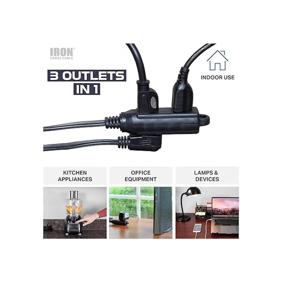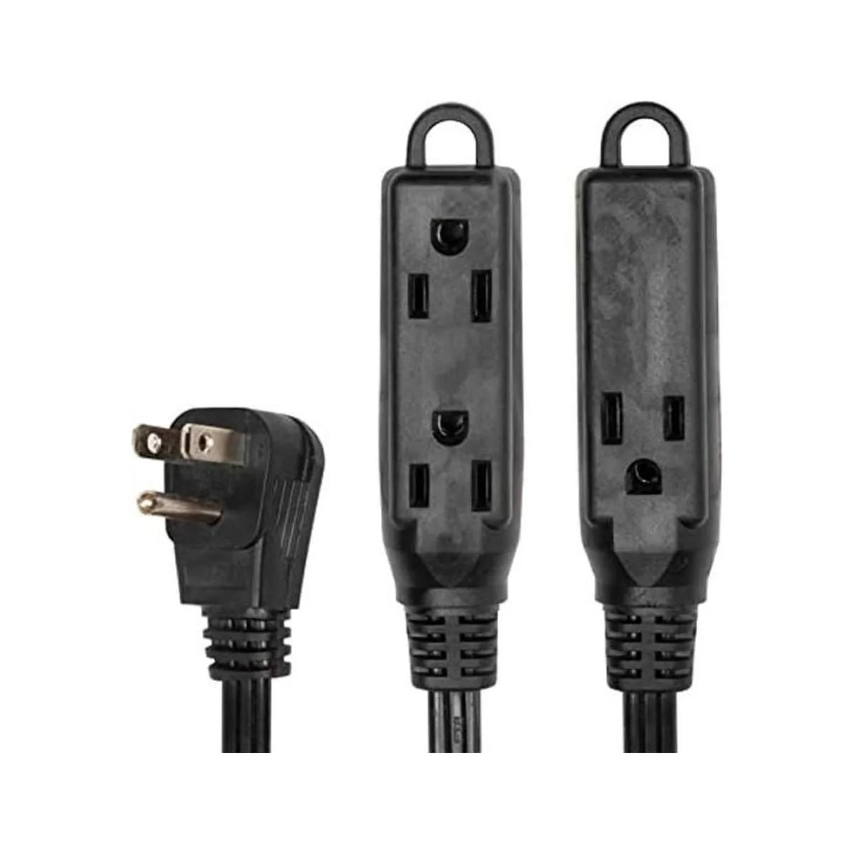 Cable de extensión con 3 tomas de corriente eléctrica, 163, cable negro resistente.