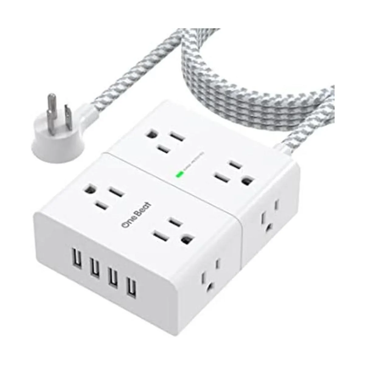 Regleta de alimentación de 3 lados con salida amplia: la regleta de alimentación One Beat cuenta con 8 tomas de CA ampliamente 2.2 pulgadas con diseño sin bloqueo de 3 lados, se adapta a adaptadores grandes sin bloquear otros. 4 puertos USB detectan y cargan de forma inteligente los dispositivos a la salida ideal 5 V/2,4 A cada puerto, 3,1 A en total. Gran potencia nominal de 1875 W/15 A es compatible con muchos dispositivos de alta potencia.