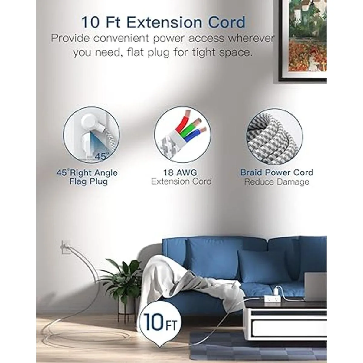 Cable de extensión resistente de 10 pies: el cable de alimentación es de 9.8 ft de largo, fácil de alcanzar tus dispositivos. Con un enchufe plano de ángulo recto de 3 resortes, perfecto para los enchufes de difícil acceso detrás de tu cama o sofá. El cable de extensión está aprobado por UL, alojado en una cubierta trenzada duradera, carcasa ignífuga y alambre de cobre 100 de gran disipación de calor más de 10000 veces de tracción y enchufe, conductor especial de cobre fosforado para enchufe, lo que lo hace lo suficientemente fuerte y seguro como para durar toda una vida.