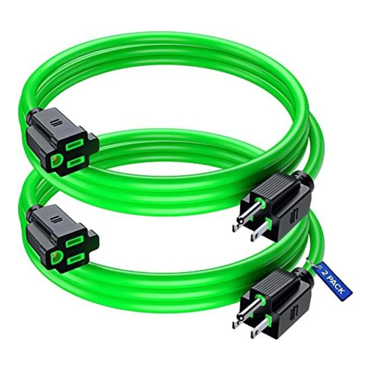Cable de extensión de 3 pies, cable de alimentación verde para interiores y exteriores, calibre 16, resistente con certificación ETL 3 pies, paquete de 2