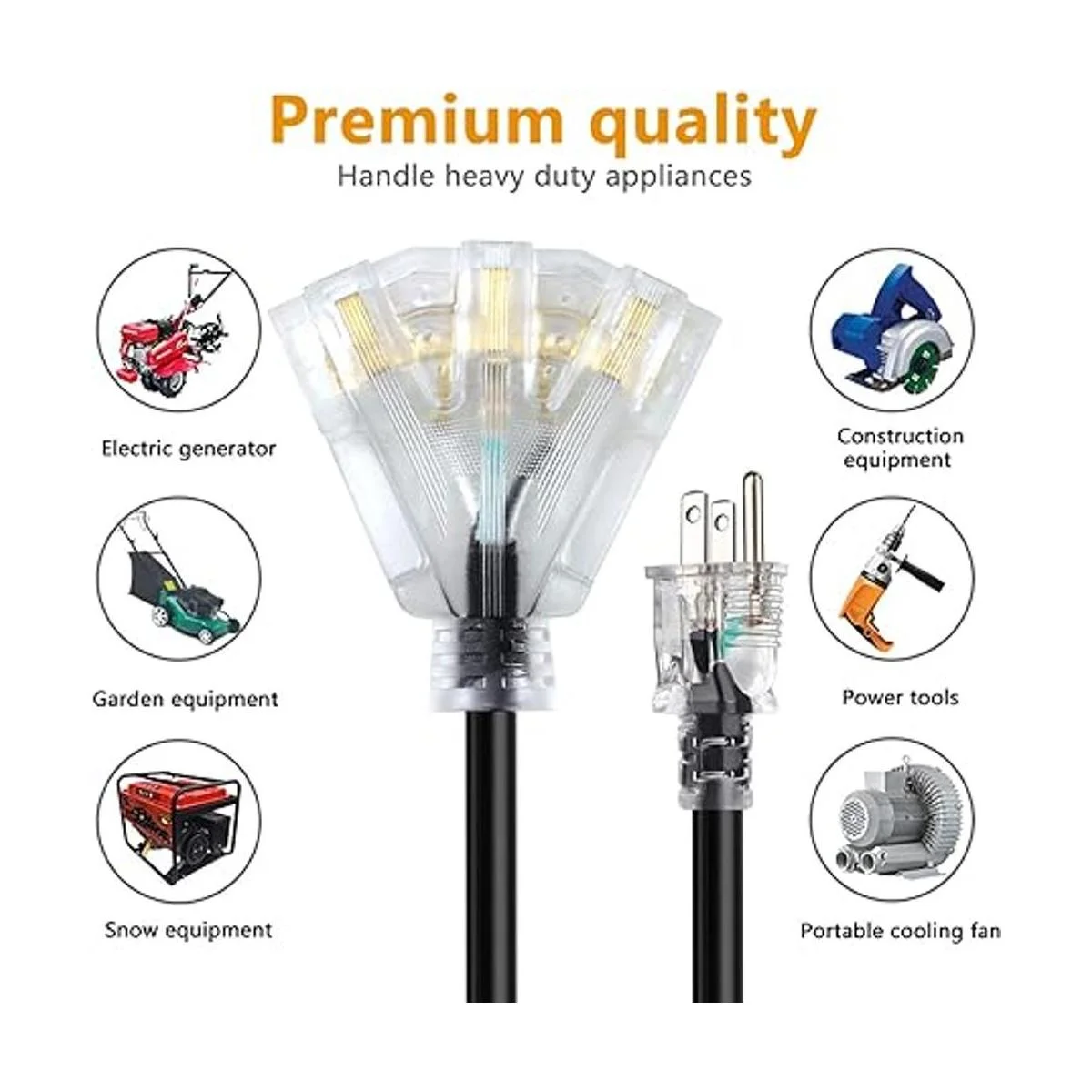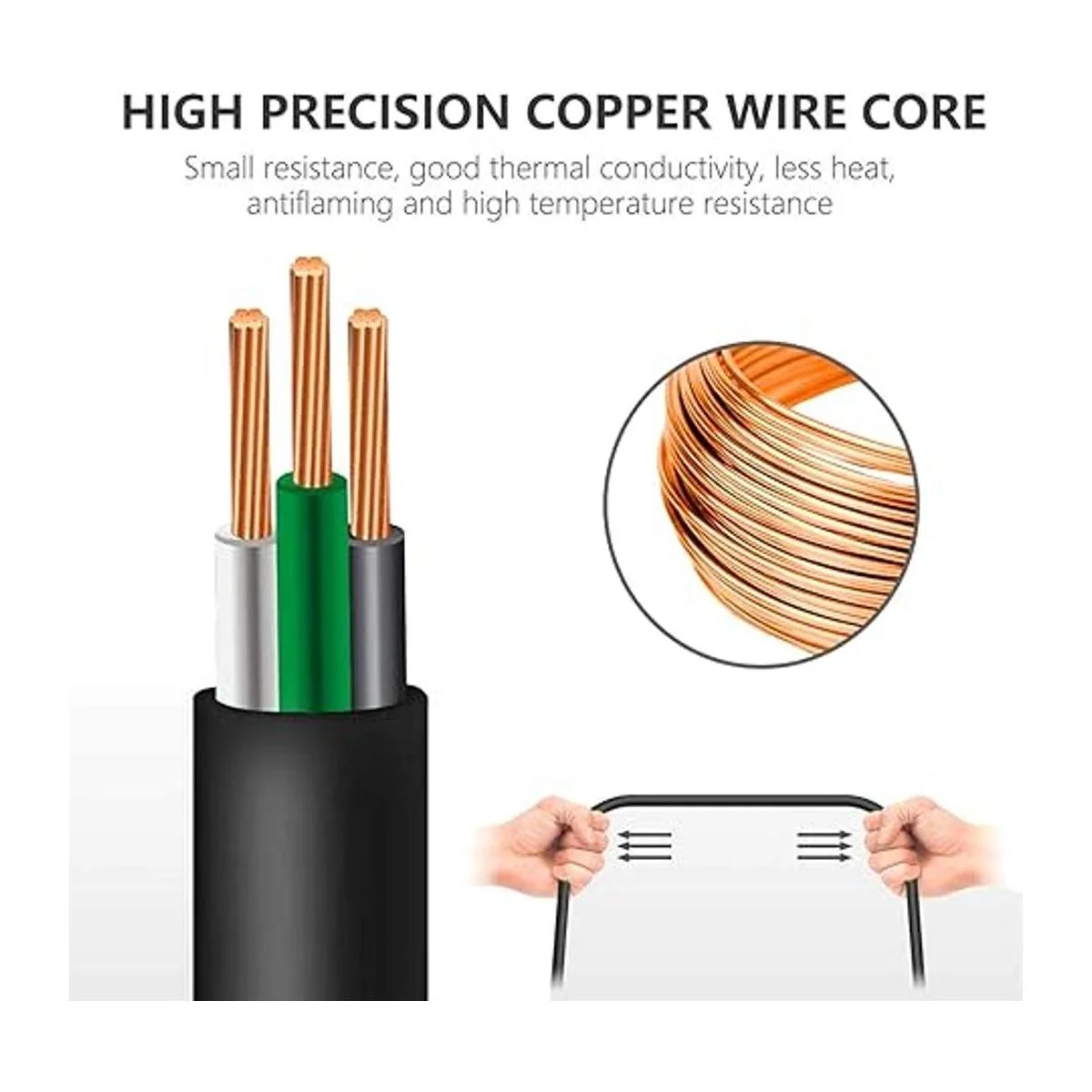 Listado UL: la certificación UL ofrece garantía de calidad e incluye un enchufe a tierra para una máxima seguridad. Los cables de extensión están hechos con cobre trenzado suave para darte energía sin sobrecalentamiento peligroso. Moldeado resistente en los extremos del enchufe con alivio de tensión, funda de PVC resistente al calor.