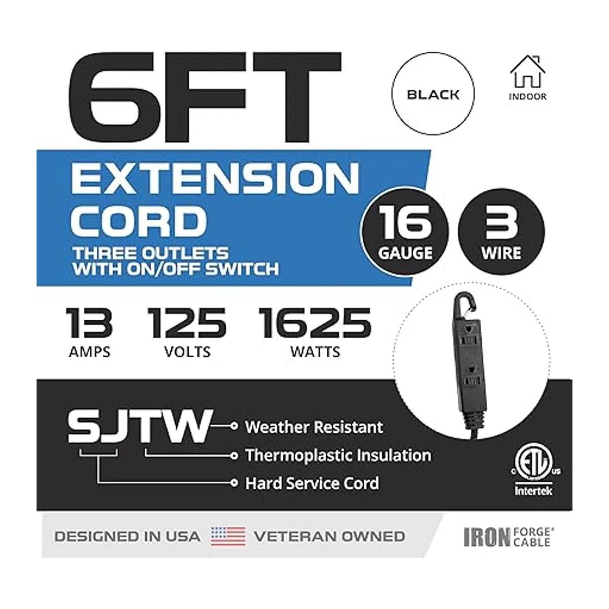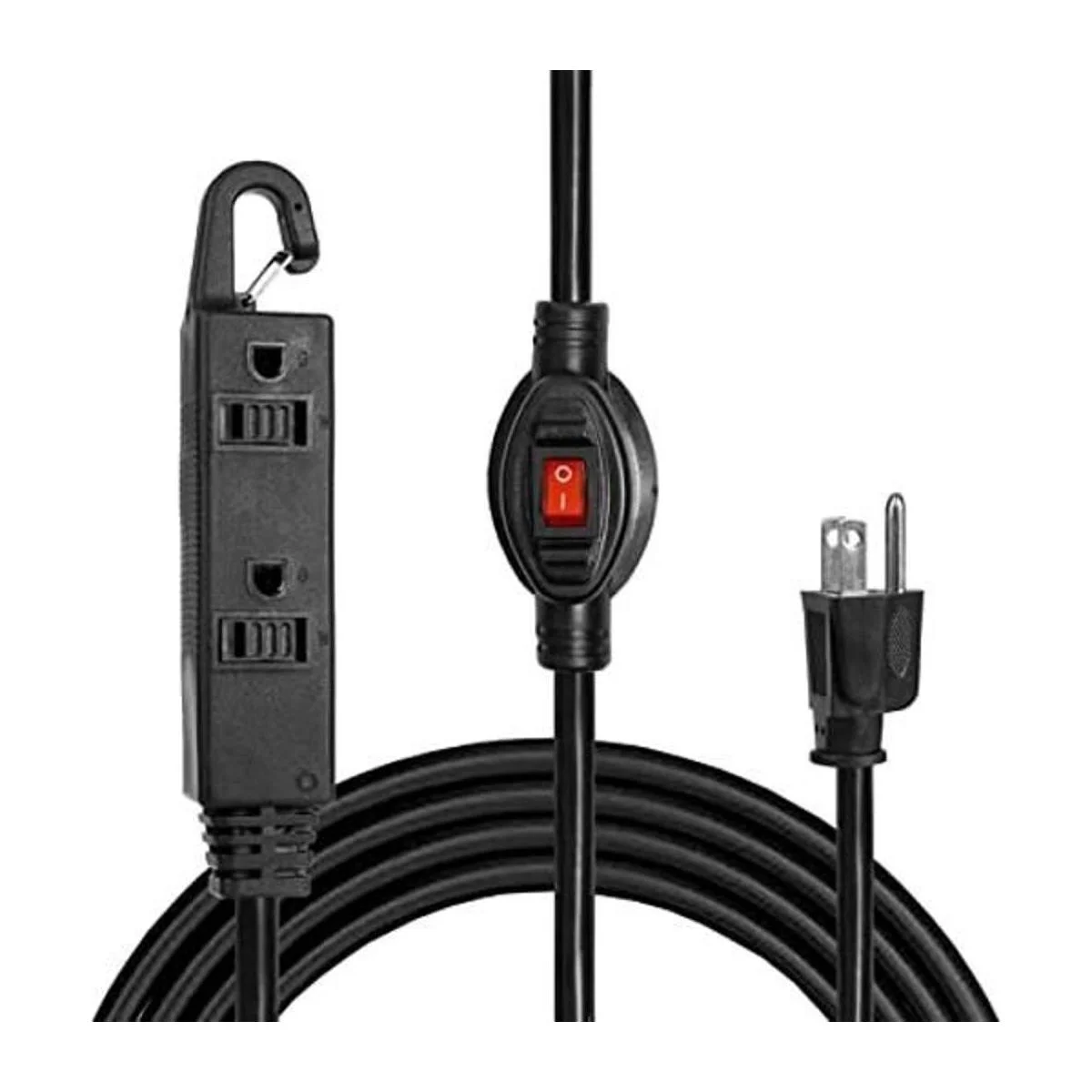 Cable de extensión de 6 pies con interruptor de encendidoapagado Cable negro 163 STJW con 3 tomas de corriente eléctrica, 13 amperios
