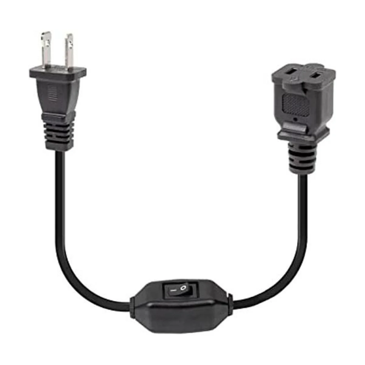 Longitud 2 pies Interruptor de encendido y apagado integrado en el centro del cable de extensión, cable de cobre AWG 16 2 clavijas Nema 115P polarizado macho a Nema 115R polarizado cable de extensión de alimentación hembra.