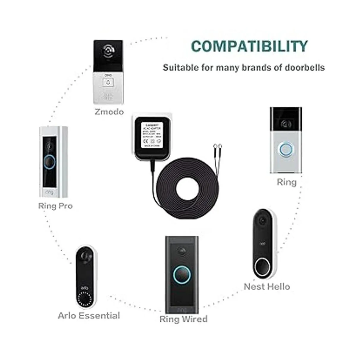 Compatible con todos los timbres Ring Doorbells que requieren 24 voltios: se adapta a todos los timbres de puerta, incluyendo Ring Video Doorbell Pro, Ring Video Door bell, Ring Video Doorbell 2, Nest Hello Video Doorbell, Greet Select Smart Doorbell, Greet HD Smart Doorbell y Greet Pro Smart Doorbell etc. y otros dispositivos que requieren una potencia constante de 24 voltios para su funcionamiento, te permiten cargar tus dispositivos de forma segura.