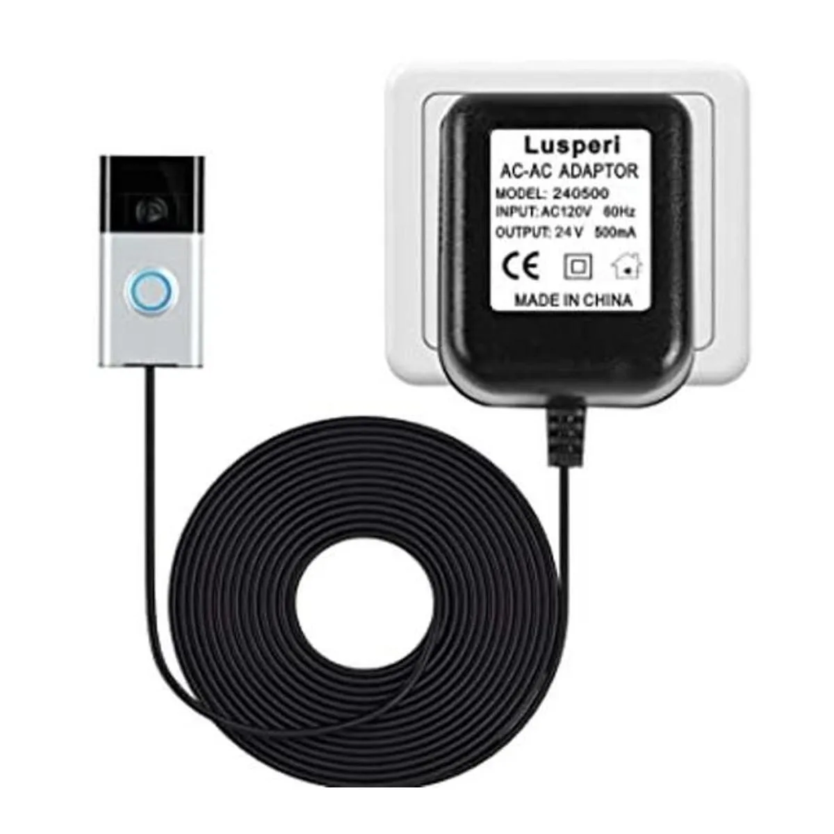 Cable de extensión extra largo de 16.4 pies para timbre de video transformador de potencia de 24 V 500 MA, adaptador de timbre de anillo AC110120 V a AC24 V, compatible con timbre visual y termostato