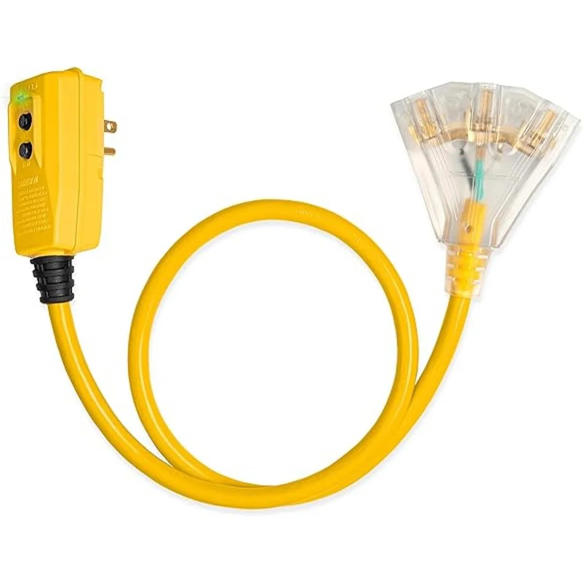 3 salidas en 1 para uso múltiple simultáneo. Resistente al agua: la cubierta de vinilo flexible protege este cable de extensión del interruptor de circuito de falla de tierra contra la humedad, la abrasión y la luz solar.
