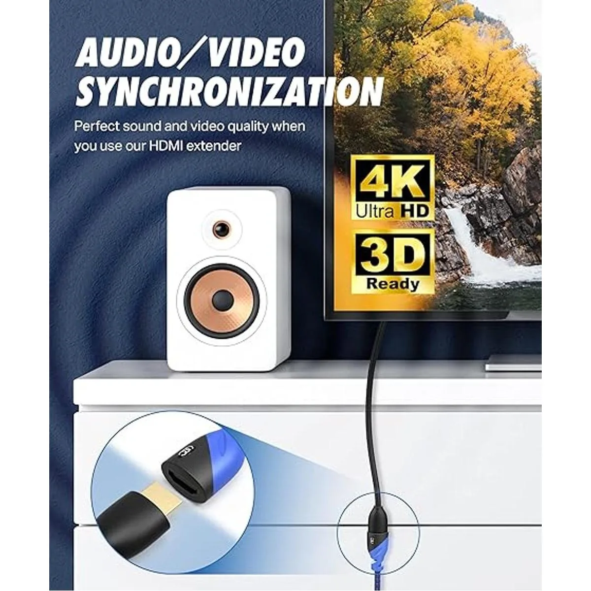 Configuración: el extensor HDMI cuenta con conectores chapados en oro resistentes a la corrosión, cubierta de metal completa, 28 AWG, triple blindaje y conductores de cobre sólido. La funda trenzada de nailon duradera se aplana o se flexiona y se contornea a la forma preferida.