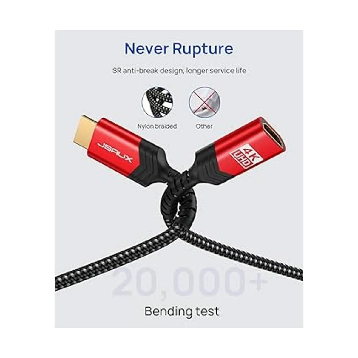 Cable de extensión HDMI de 3.3 pies, JSAUX 4K 60 Hz, cable extensor HDMI de alta velocidad macho a hembra HDR HDCP 2.2, compatible con Roku TV Streaming Stick, reproductor Bluray, TV de alta definición, laptop, PC, color rojo