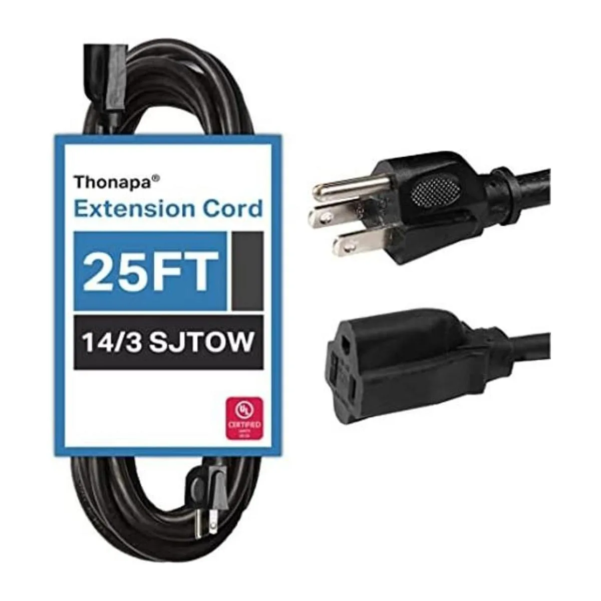 Cable de extensión para exteriores de 25 pies para granjas y ranchos Cable de alimentación SJTOW negro resistente al aceite 143 con enchufe a tierra de 3 clavijas para mayor seguridad
