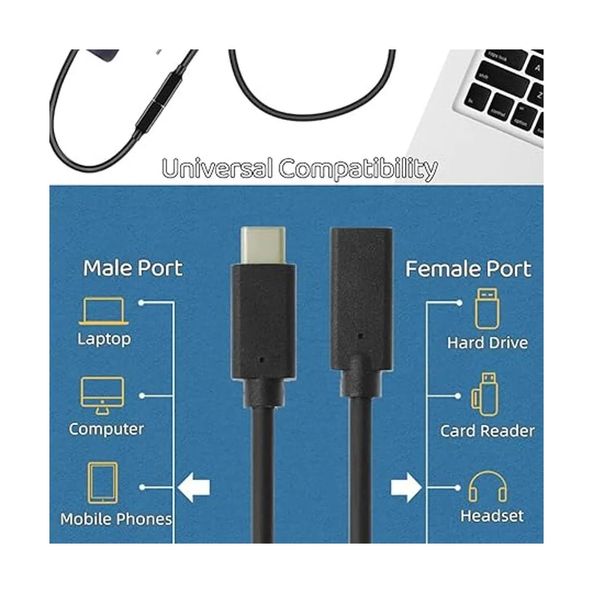 Cable de extensión USB C, cable de extensión USB C de 0.6 pies7.9 in, cable de extensión USBC 3.1 macho a hembra, cable corto Thunderbolt 3 compatible con Nintendo Switch, MacBook Air Surface XPS 180 grados