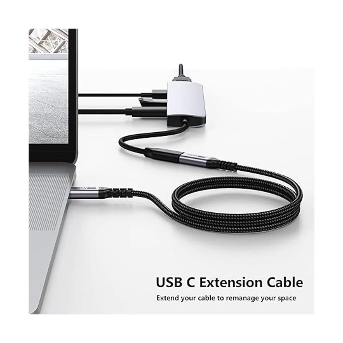 Transferencia rápida de 10 Gbps: la velocidad máxima de transmisión de datos soportada es de 10 Gbps, lo que significa que solo tarda 10 a 20 segundos en transmitir un archivo de 0.35 oz utilizando el extensor de cable USB C a USB C.