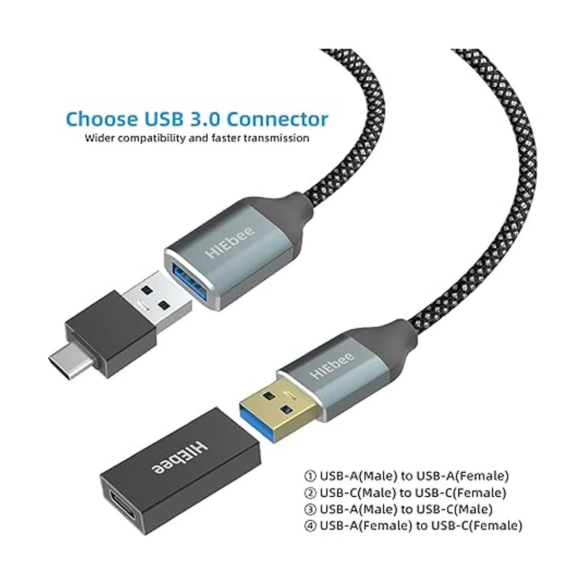 Cable de extensión USB tipo A macho a hembra USB 3.0 de 3.3 pies, adaptador USB 3.0 macho a USB C macho, y adaptador USB 3.0 hembra a USB C hembra de 5 Gbps de datos para teclado, mouse, etc. Paquete de 3