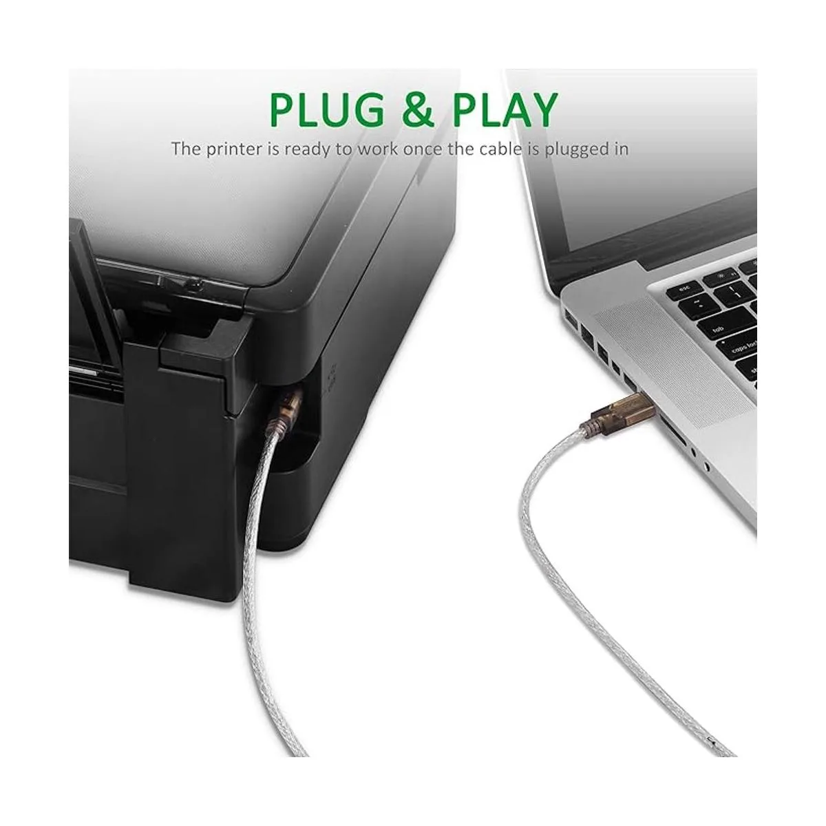 El cable USB A macho a B macho conecta el PC a una impresora, escáner, hub de interruptor de impresora, interruptor KVM y más con un puerto USB B cuadrado.