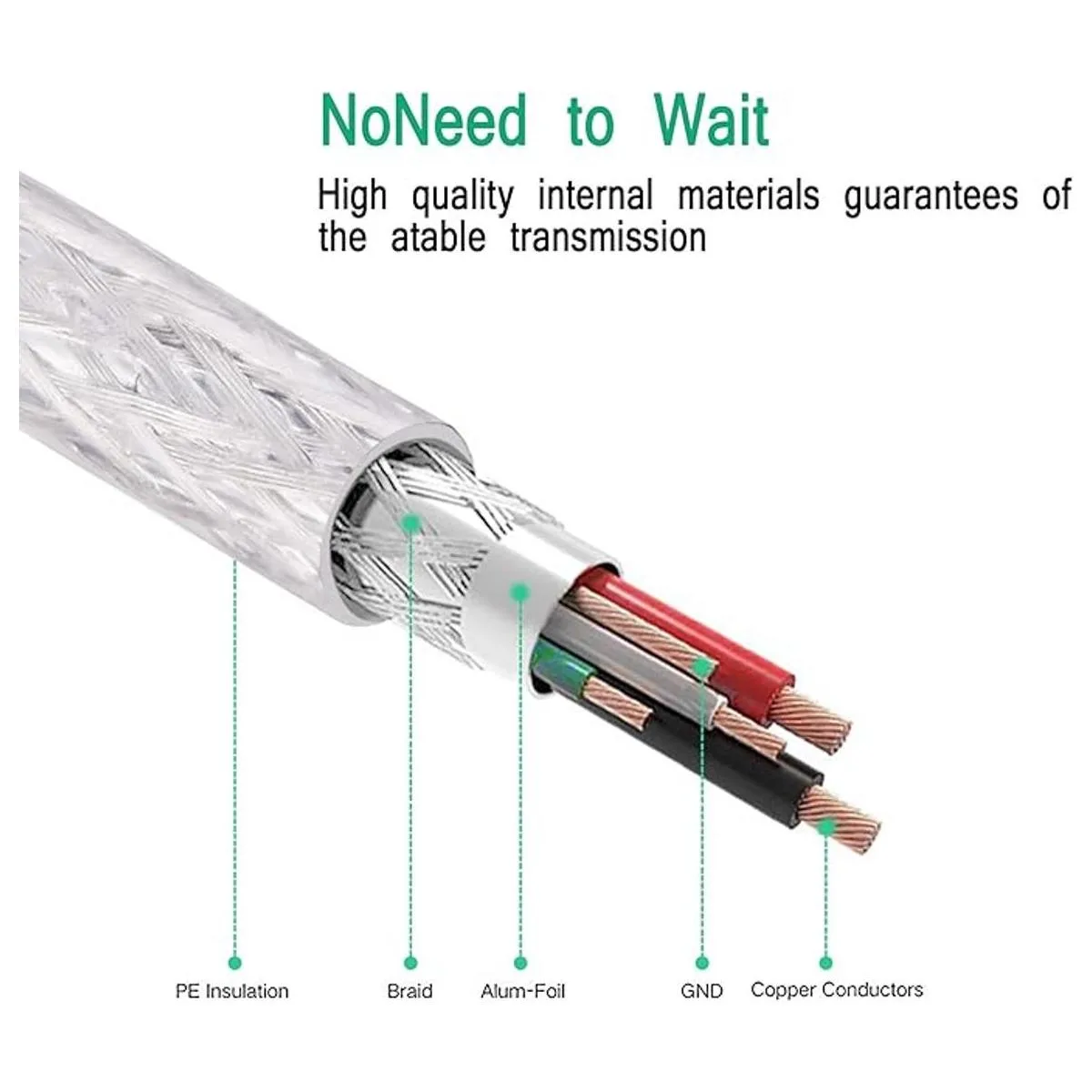 Cuenta con blindaje de lámina y trenza, contactos chapados en oro y construcción de par trenzado de cobre que proporciona un excelente rendimiento, puedes ver claramente la estructura interna.