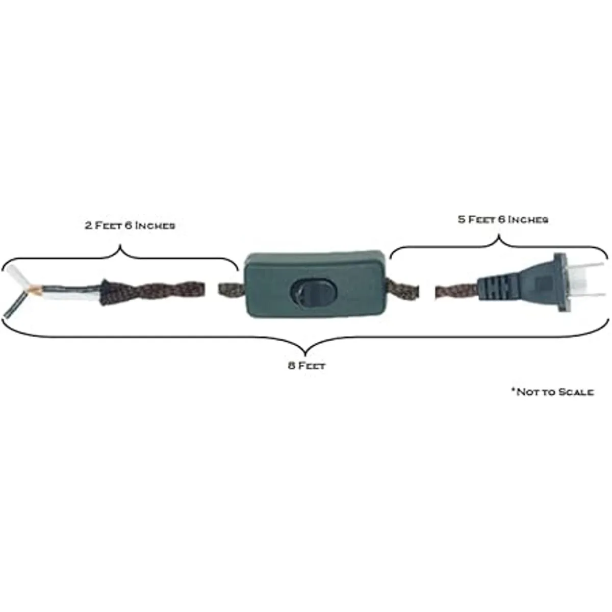 Cable de lámpara eléctrica cubierto de tela de rayón trenzado con enchufe de extremo polarizado, interruptor y extremos pelados listo para cablear 8 pies de largo