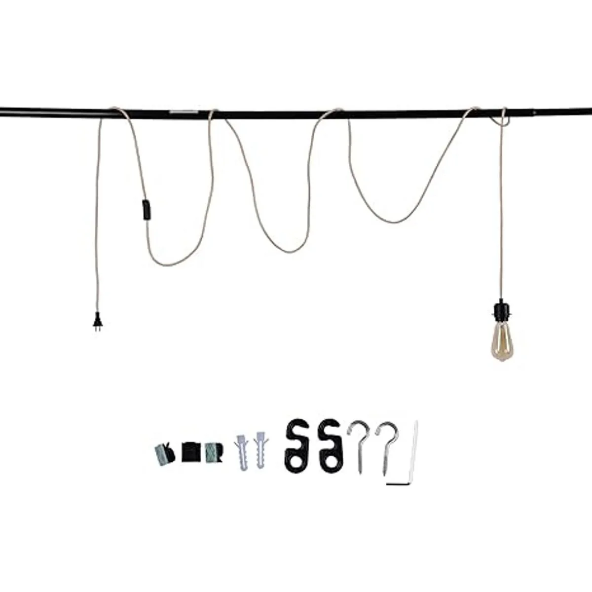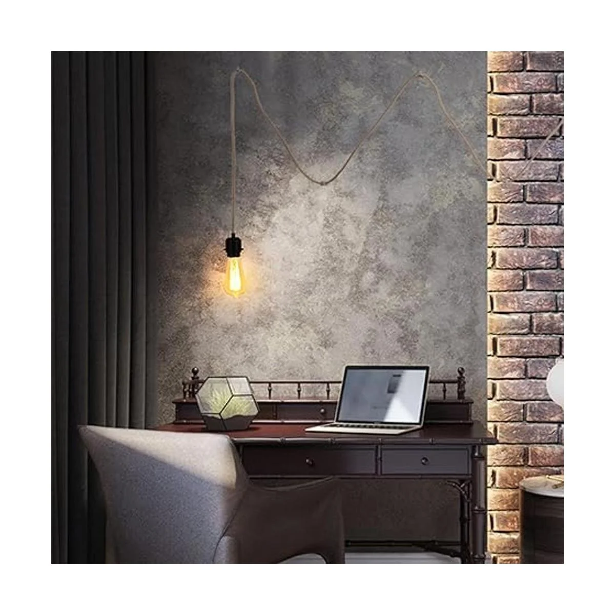 Estilo vintage: el cable de luz colgante está hecho de cuerda de nailon de alta calidad, tiene un excelente aislamiento, resistencia al calor y durabilidad, obtén un enchufe de luz certificado UL y cable que garantizan un uso seguro, no solo se puede utilizar como lámpara colgante casera, sino que también se puede utilizar como una bonita lámpara de mesa, lámpara de pared, colgante.