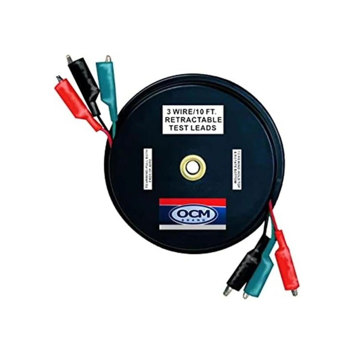 CABLE DE PRUEBA RETRCTIL DE 3 CABLES OCM CABLE DE COBRE ELCTRICO DE 18 MEDIDORES, CLIPS PARA COJINETES, CAJA RESISTENTE A IMPACTOS