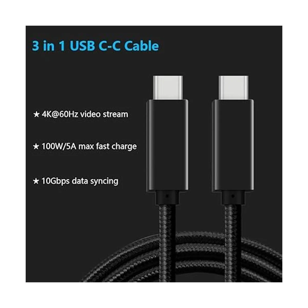 Cable de vídeo USB CC de 10 pies, Cuxnoo 4 K USB tipo C Monitor Cable Soporte 100 W Carga rápida y sincronización de datos de 10 Gbps, Negro