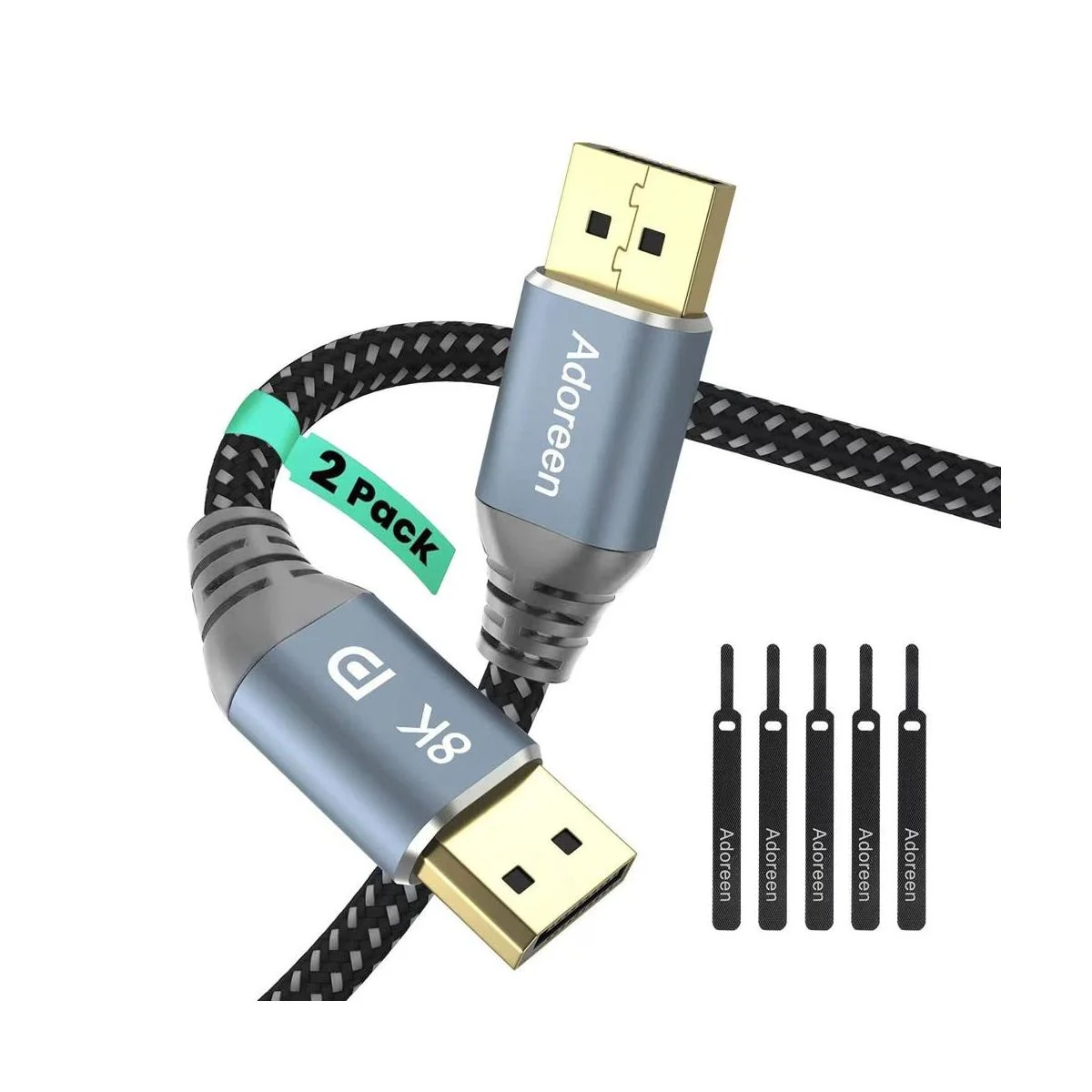 Cable DisplayPort 1.4 con certificación VESA de 6 pies2 unidades, cable Adoreen DP de 1.530 pies 8K a 60Hz 4K a 144Hz 2K a 240Hz 32.4Gbps HBR3 HDCP HDR, FreeSync GSync, puerto de pantalla trenzado para gráficos de monitor 5 lazos