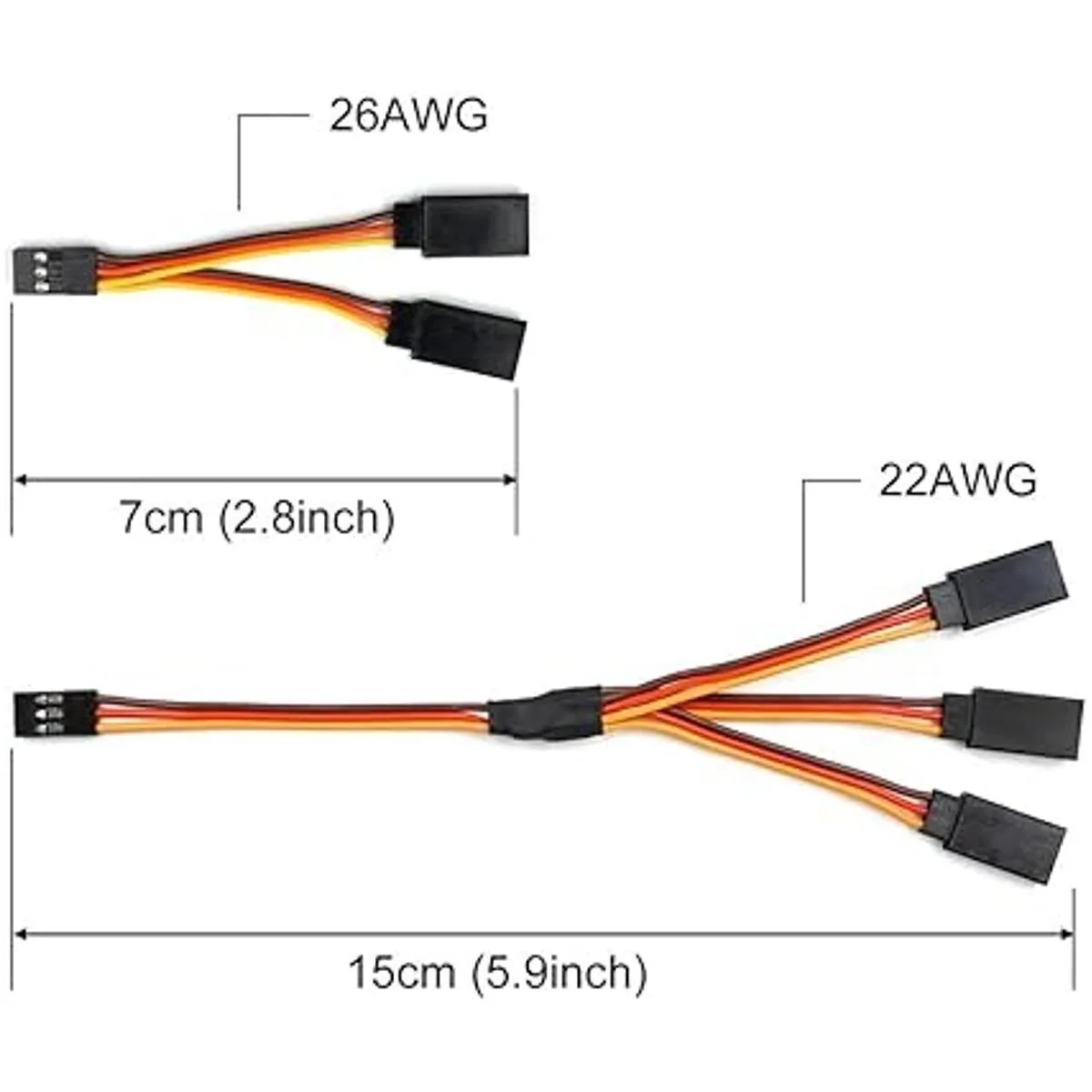 Cable divisor de arnés servo Y 3 pines conector macho a hembra, cable de extensión de 4 vías, compatible con aviones JR Futaba RC 3 piezas 1to2 y 2 piezas 1to3