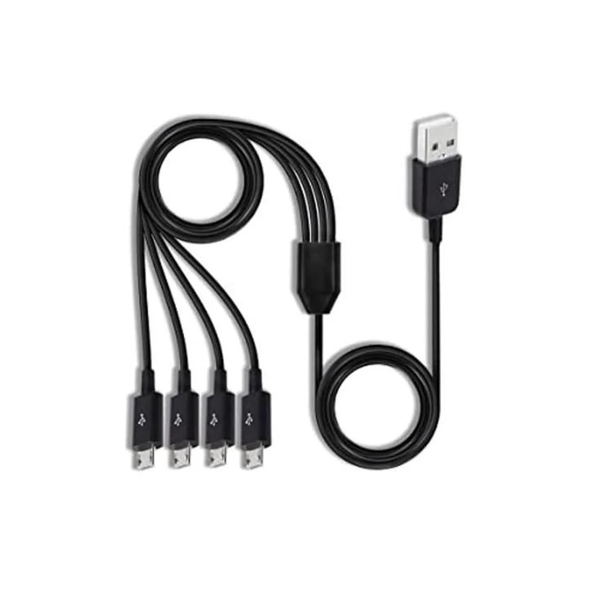 Cable divisor micro USB, cable de carga micro USB 4 en 1, cable micro USB, USB 2.0 A macho a cuatro micro USB macho, cable adaptador de sincronización de datos, cable de carga multipuerto micro USB 1.64 pies, negro