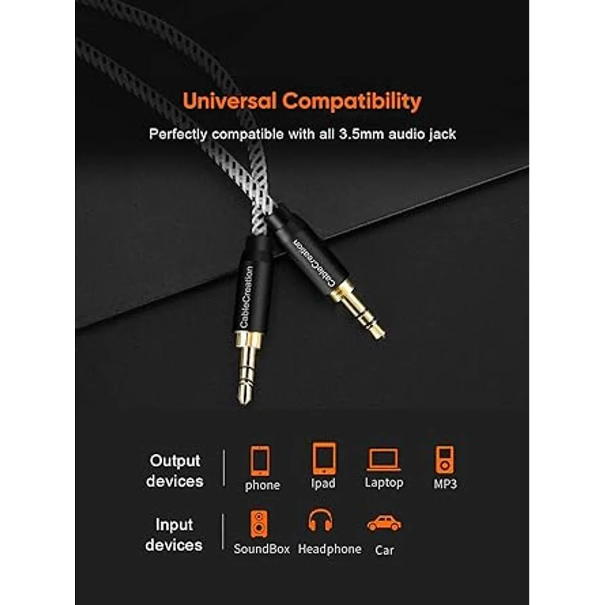 Cable estéreo de audio CableCreation, chapado en oro, de 964 pulgadas. Cable de audio Aux 3.5 para iPhone, iPad, Samsung y otro dispositivo de puerto de enchufe CC de 964 pulgadas, color dorado de 3.3 pies Negro