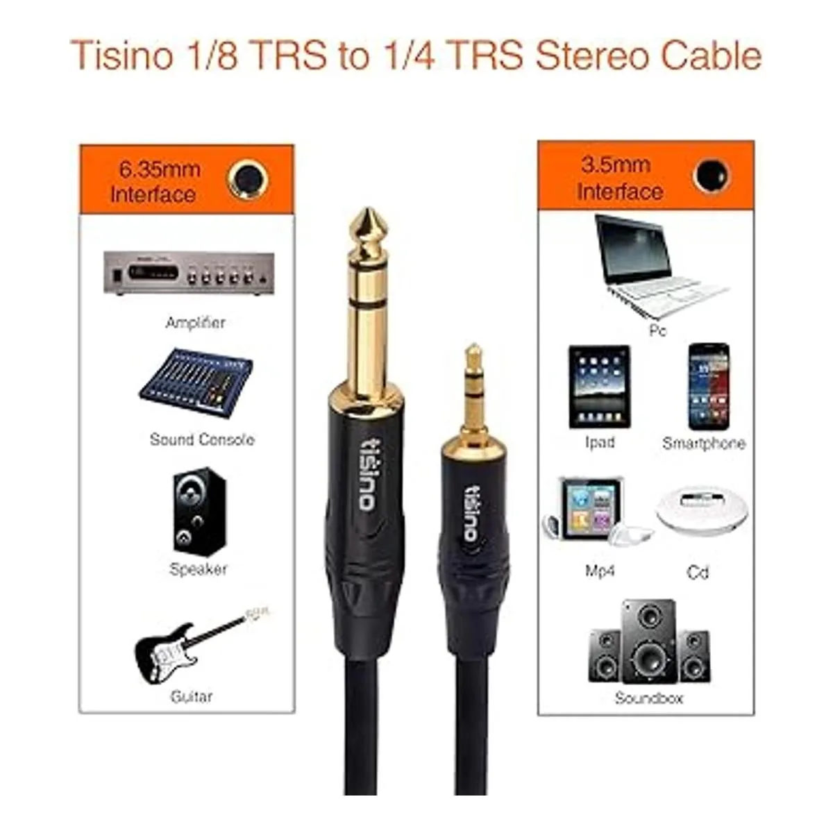 Cable estéreo TRS de 0.138 in a 1/4, este cable tiene dos conectores macho, puede comunicarse en ambas direcciones, el audio puede fluir en cualquier dirección. Este cable está diseñado para interconectar dispositivos de audio con jack estéreo de 1/4 pulgadas y mini jack estéreo de 1/8 pulgadas. Es ideal para conectar tu smartphone, iPod, iPod, ordenador portátil o PC con una salida jack de 0.138 in a un dispositivo con entradas jack de 0.250 in como altavoces, consola de mezcla, dispositivos de cine en casa, amplificadores, etc.