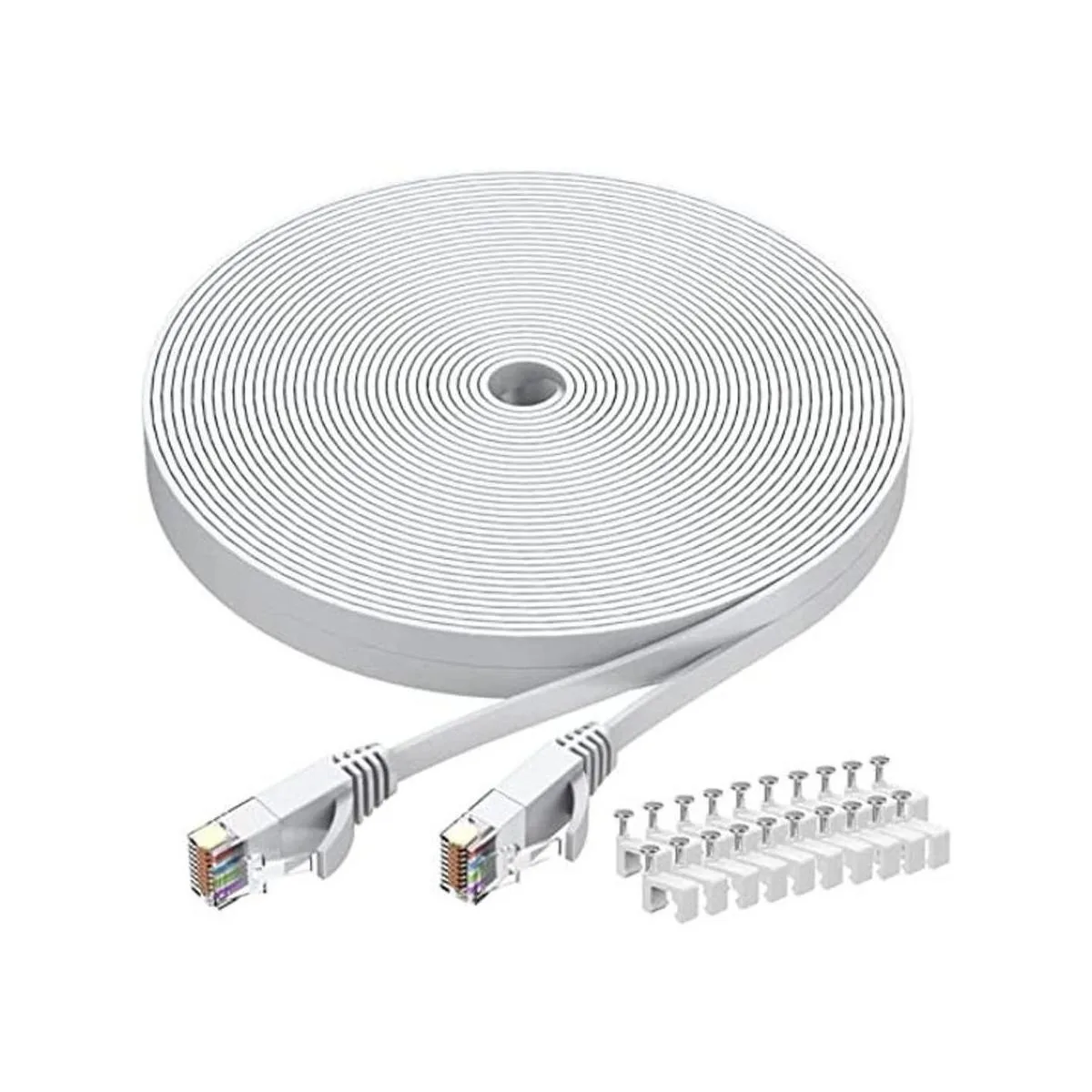 Cable Ethernet Cat6 de 50 pies, color blanco, cable de conexión Ethernet de red LAN de Internet Cat6, plano RJ45, 50 pies