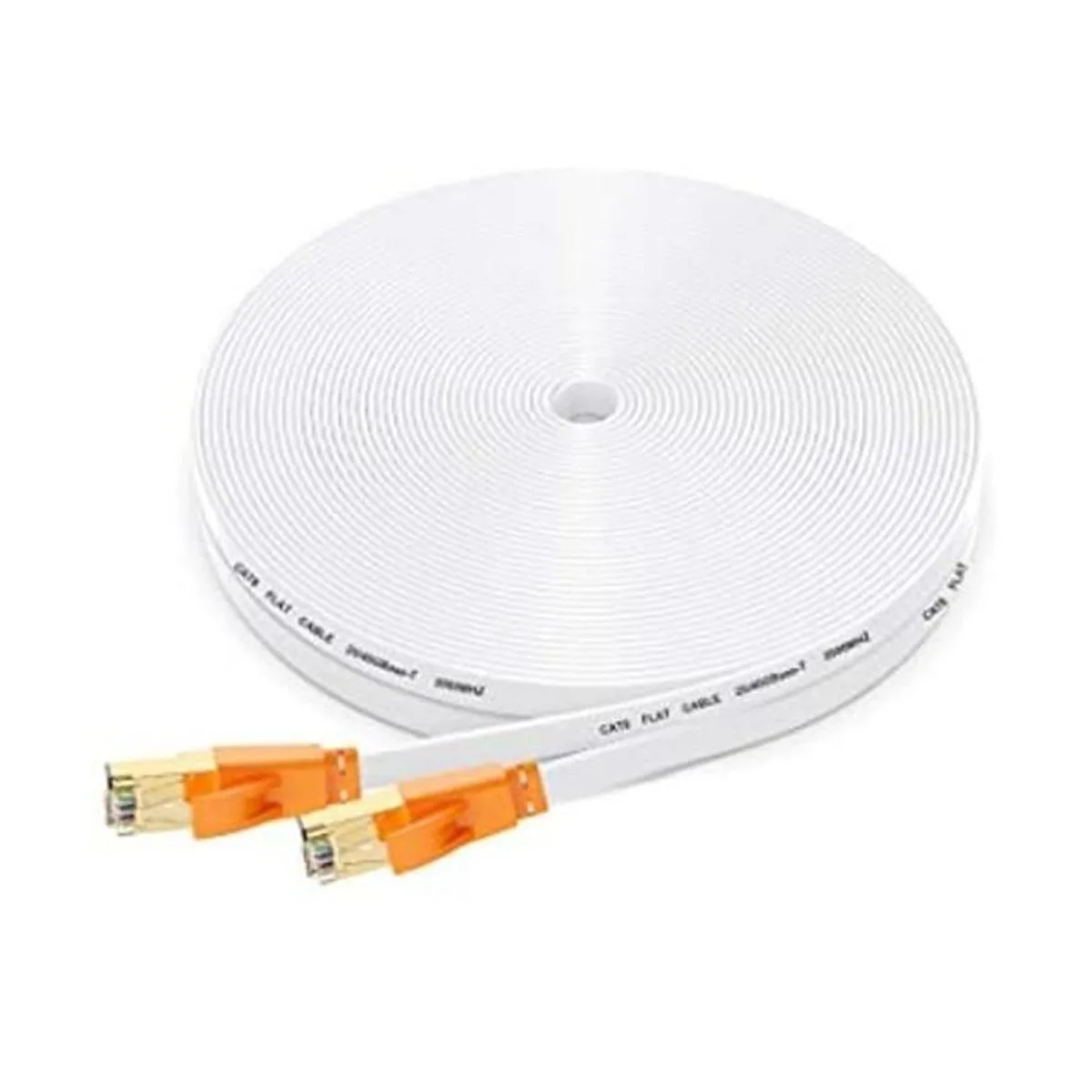 Cable Ethernet Cat8 de 50 pies, cable de red LAN plano de alta velocidad, más rápido que Cat7Cat6Cat5, cable de conexión de larga duración con conector RJ45 chapado en oro para Xbox, PS4, router, módem, centro de videojuegos blanco