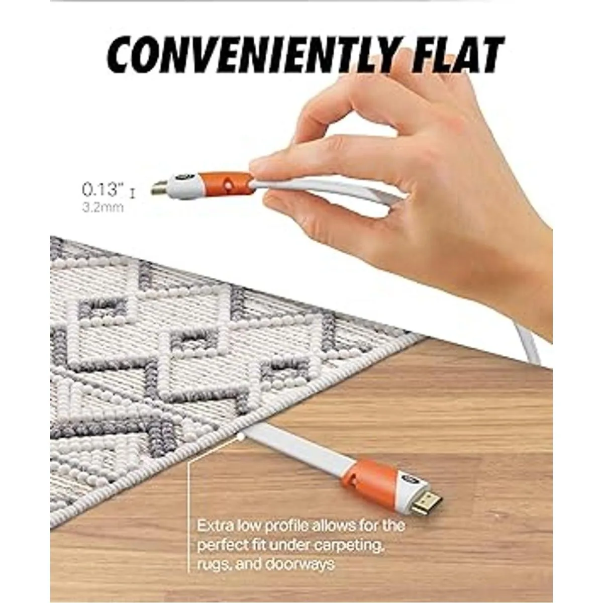 Control de calidad: cada cable HDMI plano de 20 pies pasa por rigurosas pruebas para garantizar que mantiene constantemente una conexión de señal constante con transmisión óptima, colores ricos, imágenes nítidas y sin interferencias ni parpadeos.