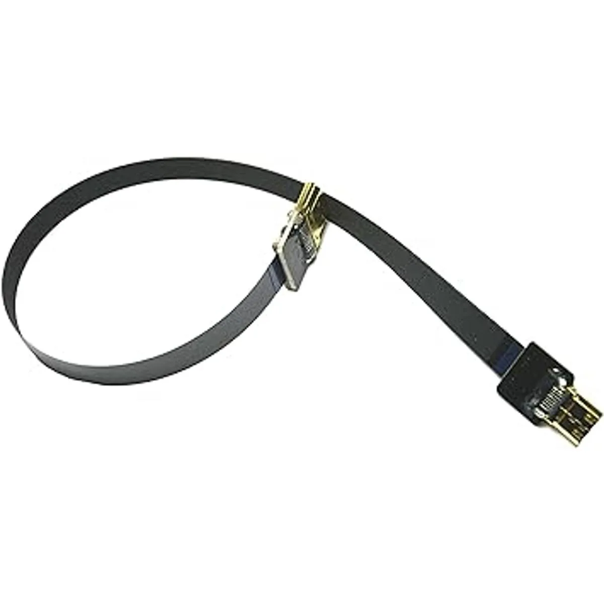 Cable HDMI plano FPV mini macho HDMI recto a estándar HDMI Full HDMI normal HDMI recto macho para plataforma Gimbal Canon 5D3 5D2, panasonic lumix GH3 GH2, Sony nex 5N 5T 5R 7N 5CM negro