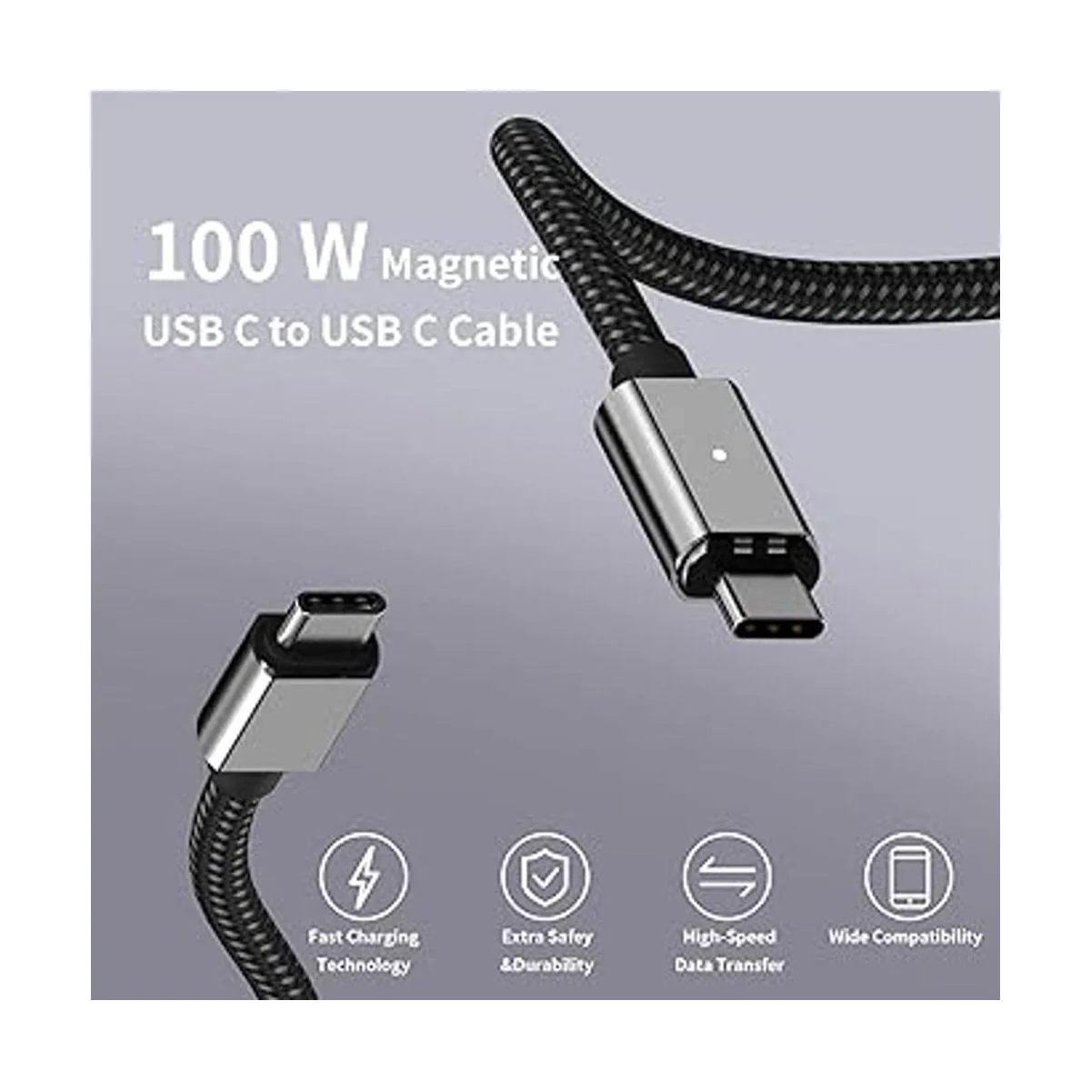 Cable magnético de carga rápida de 100 W, cable USB C a USB C paquete de 2, 5 pies, transferencia de datos de 480 Mbps, compatible con MacBook, iPad Pro, Galaxy S22, dispositivos USBC