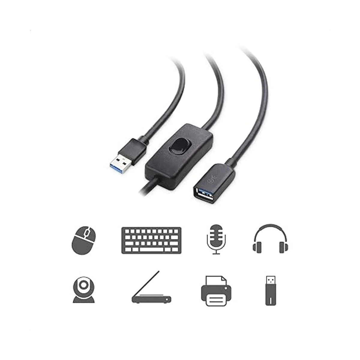 Cable Matters Cable de extensión USB 3.0 con interruptor de encendido y apagado de 5.9 ft, compatible con datos y alimentación interruptor de encendido USB 3.0interruptor de apagado USB
