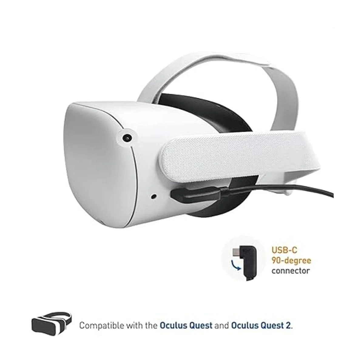 El cable USBC es compatible con el puerto de cable Oculus Quest Link / puerto de cable Oculus Quest 2; juega juegos de PC VR en el auricular portátil Oculus Quest 2; el conector USB activo unidireccional se conecta a ordenadores portátiles y ordenadores de sobremesa, y el conector USBC de 90 grados se conecta a auriculares VR y otros dispositivos USBC