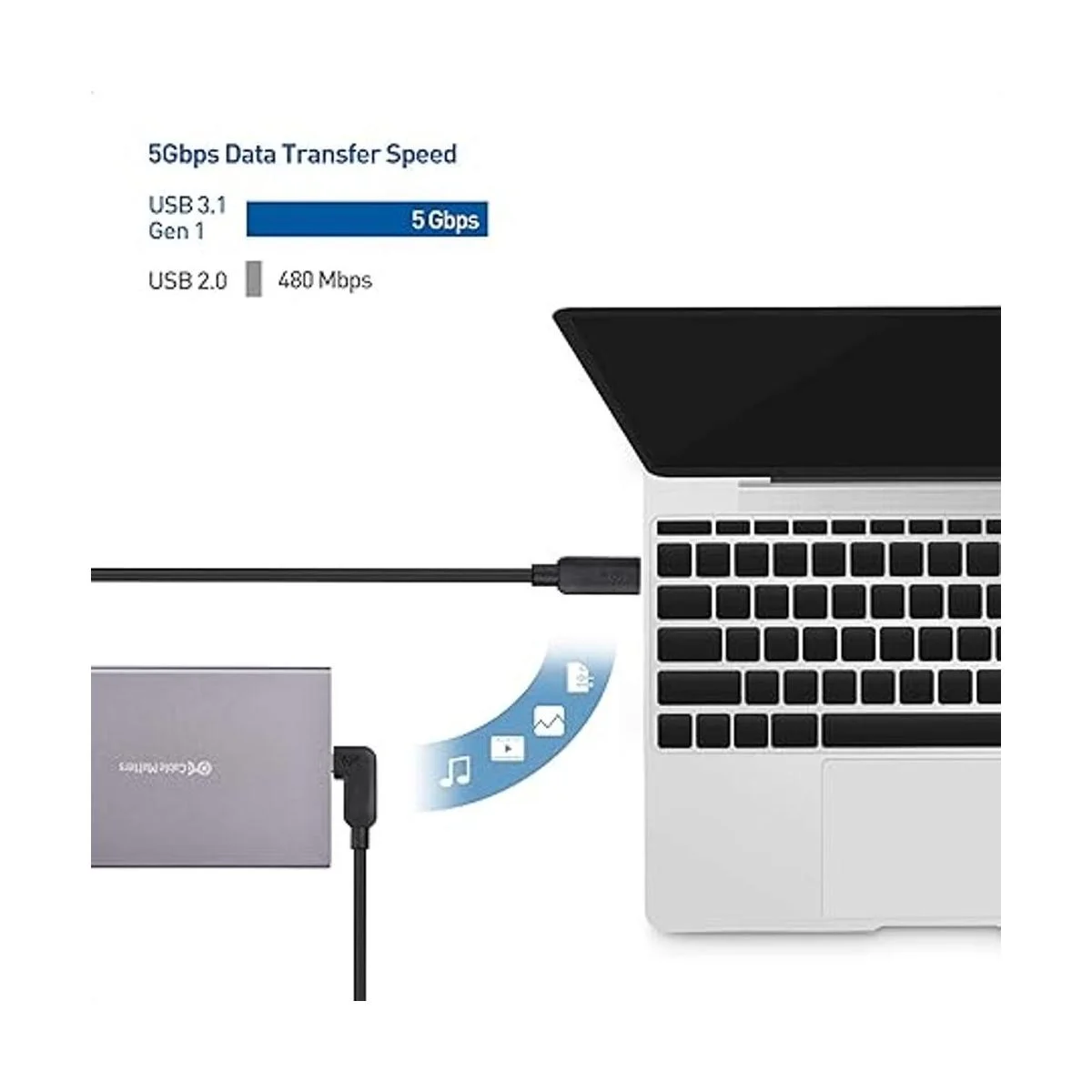El cable USBC soporta una tasa de transferencia de datos de hasta 5 Gbps, lo que hace que el cable sea útil como un cable USBC estándar para otros dispositivos como smartphones y tabletas. No es compatible con carga USB de suministro de energía