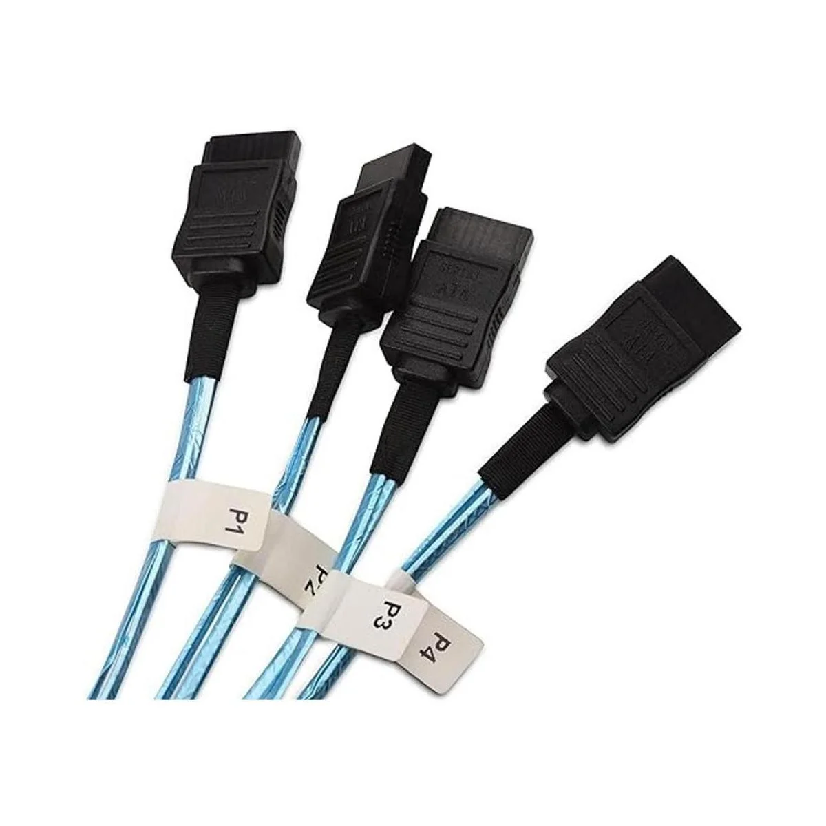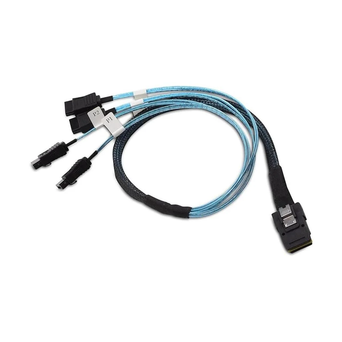 El cable interno de datos Mini SAS conecta un controlador RAID o PCIe con un puerto SFF8087 a 4 unidades SATA discretas; el adaptador Mini SAS a SATA proporciona una conectividad interna fiable entre una tarjeta controladora SCSI conectada en serie en un sistema informático y dispositivos de almacenamiento conectados directamente con un conector SATA