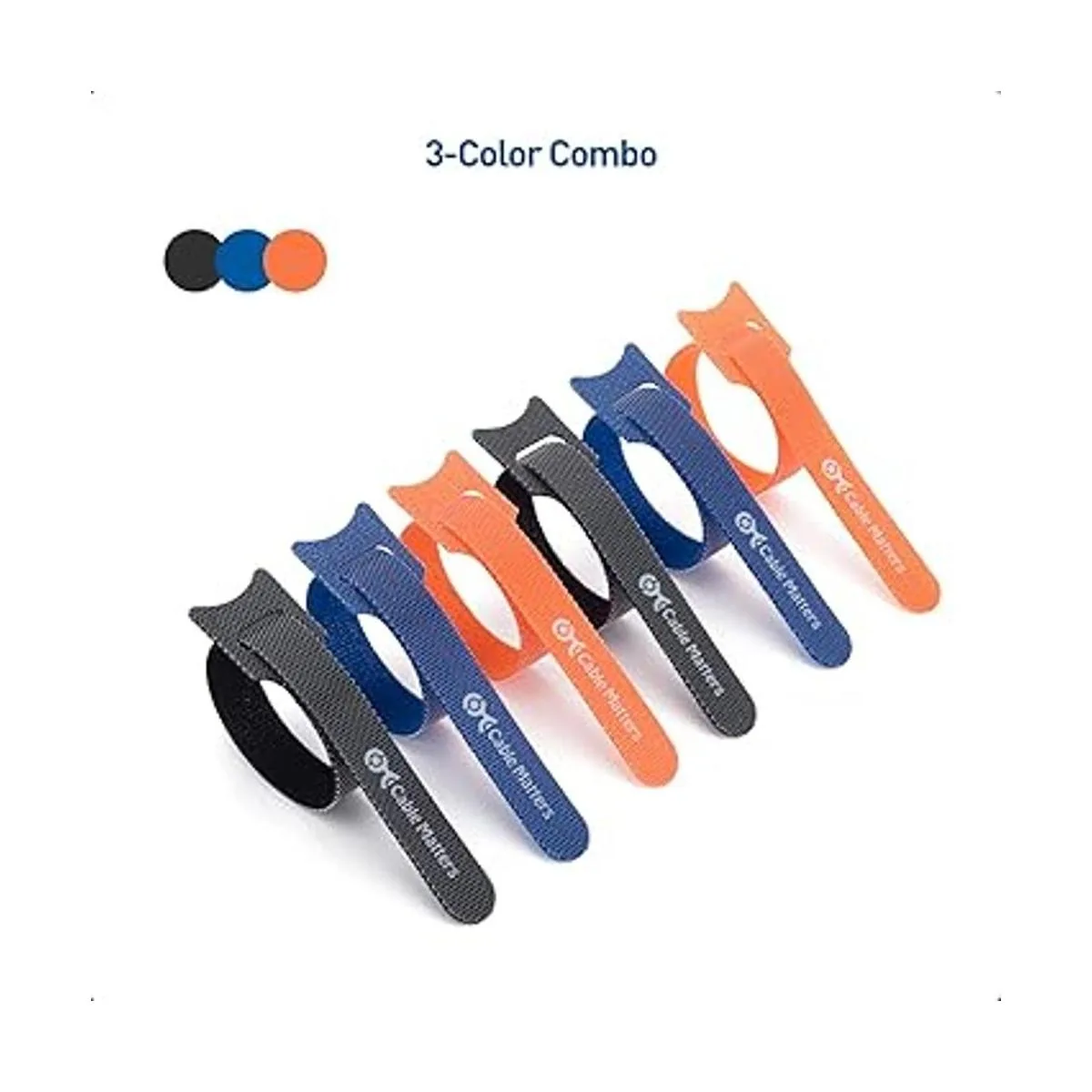 Cable Matters Paquete de 100 bridas de alambre reutilizables de 8 pulgadas con resistencia a la tracción de 42 libras, bridas de cuerda multicolor, negro, azul y naranja, envoltura de cables, bridas de cremallera, correas de gestión de cables