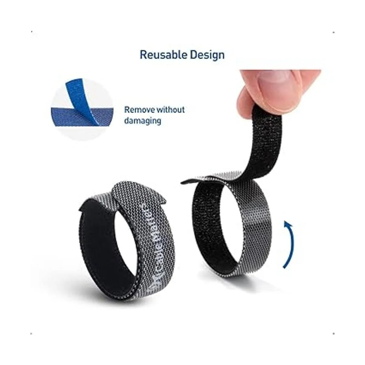 Las bridas de velcro son fáciles de usar; simplemente envuelve la correa alrededor de los cables, engancha la corbata a través de la guía y asegura la envoltura de nailon a la correa; el diseño reutilizable garantiza que las correas de gestión de cables se puedan quitar fácilmente sin dañar las bridas de alambre reutilizables