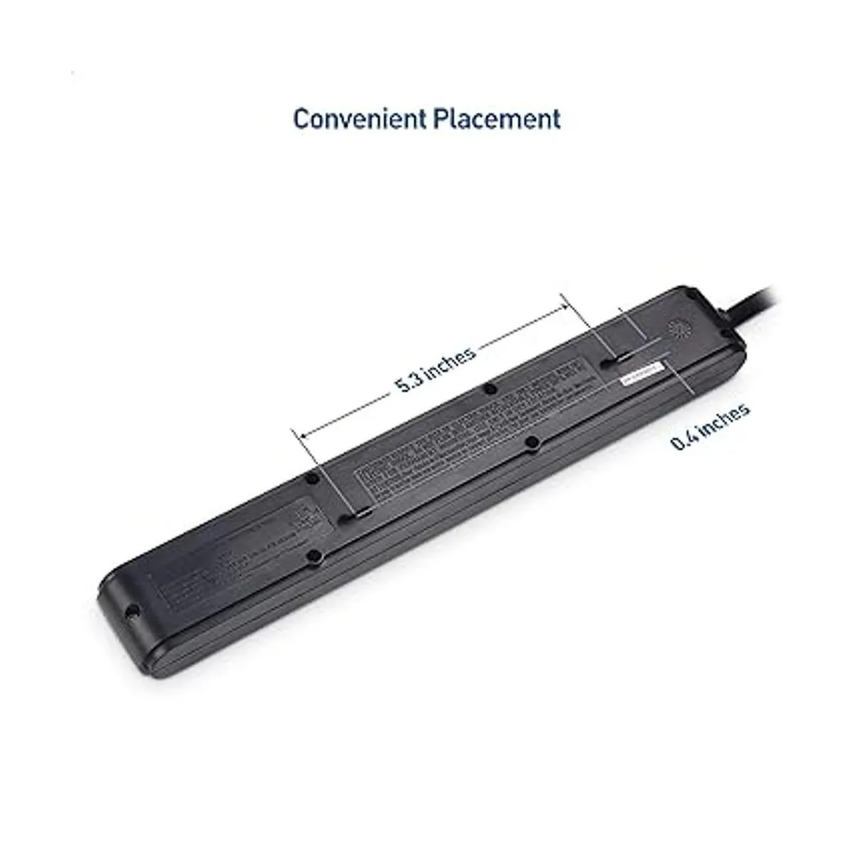 La tira de alimentación de 8 pies con cable largo es fácil de manejar y enrollar cuando no está en uso; el alivio de tensión moldeado en el enchufe de este cable de extensión proporciona una larga vida útil y durabilidad; incluye una plantilla de montaje en superficie para instalar en una pared o debajo de un escritorio