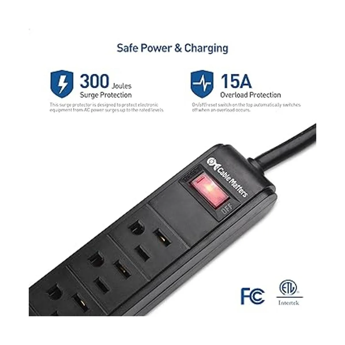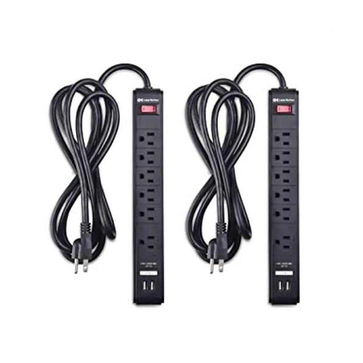 Cable Matters Paquete de 2 protectores de sobretensiones de 6 tomacorrientes con USB, cable de extensión de 8 pies de largo protector contra sobretensiones con puertos USB en color negro