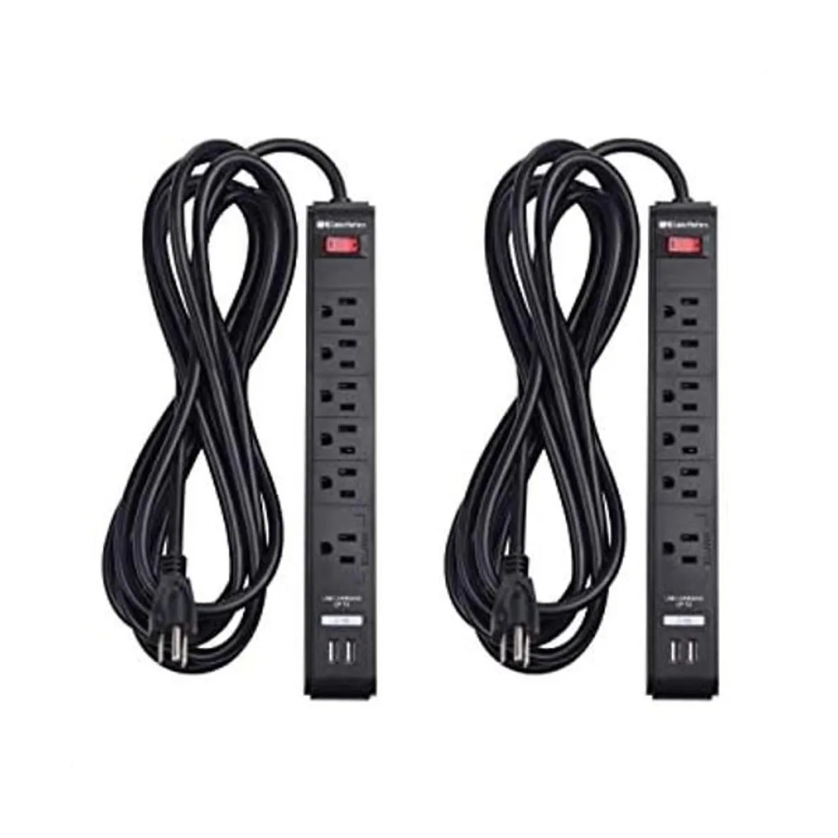 Cable Matters Paquete de 2 regletas de 6 tomas de corriente con USB, cable de extensión de 12 pies de largo protector de sobretensiones con puertos USB en negro