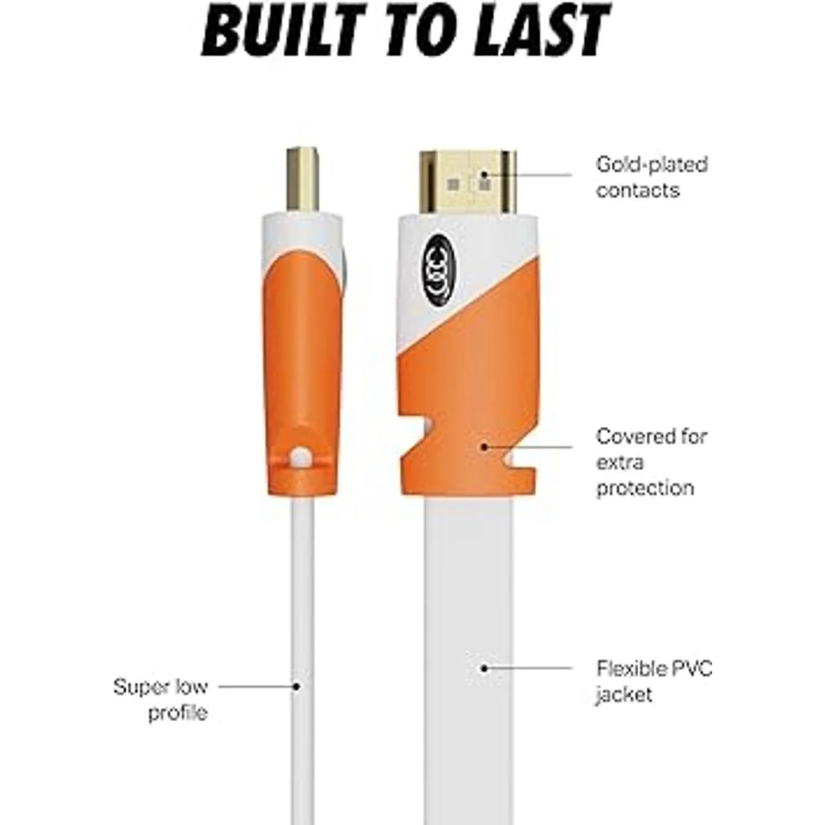 Cable plano HDMI HDMI de alta velocidad 2.0 por Ultra Clarity CL3 graduado Canal de Retorno de Audio Arc 4 K Ultra HD 2160pBanda de hasta 18 Gbps3d hd Cable de 2 x 1080P Ready Color Blanco con punta de oro Conector