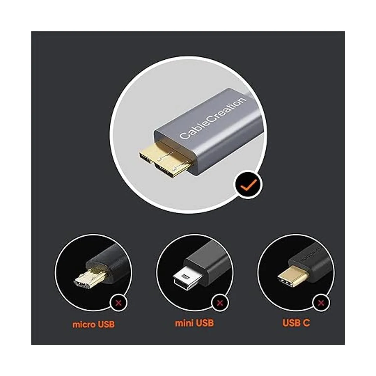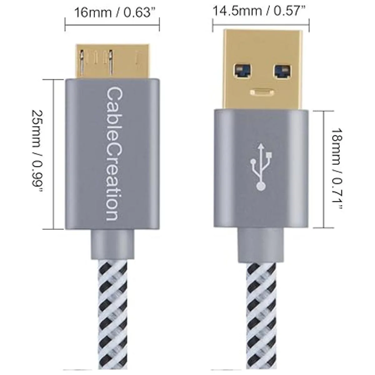 Cable USB 3.0, cable USB 3.0 A a Micro B, compatible con disco duro externo, cámara HD, carga Galaxy S5, Note 3N9000, 3.3 pies 1M, aluminio gris espacial