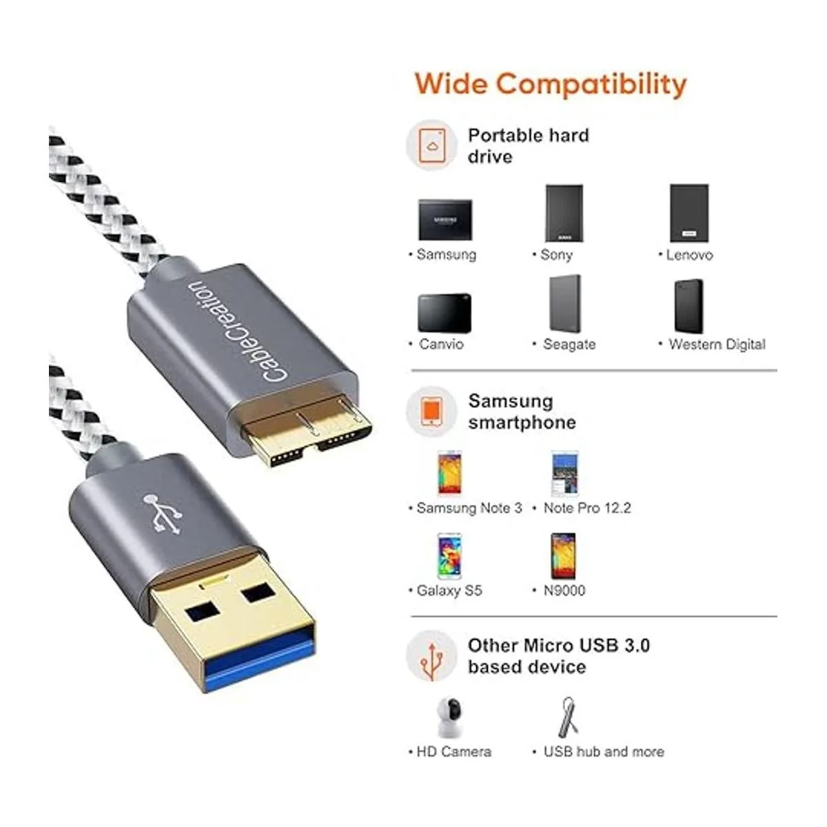 Compatibilidad salvaje Este cable micro USB 3.0 diseña para conectar smartphones, tabletas, discos duros externos como Toshiba, Canvio, Seagate, Western Digital, Newman, unidad de estado sólido SS, cámara HD y más dispositivos con puerto USB 3.0 MicroB a tu PC o portátil para sincronización y carga de datos. Funciona perfectamente para Samsung Galaxy Note 3/S5/Note Pro 12.2/N9000.
