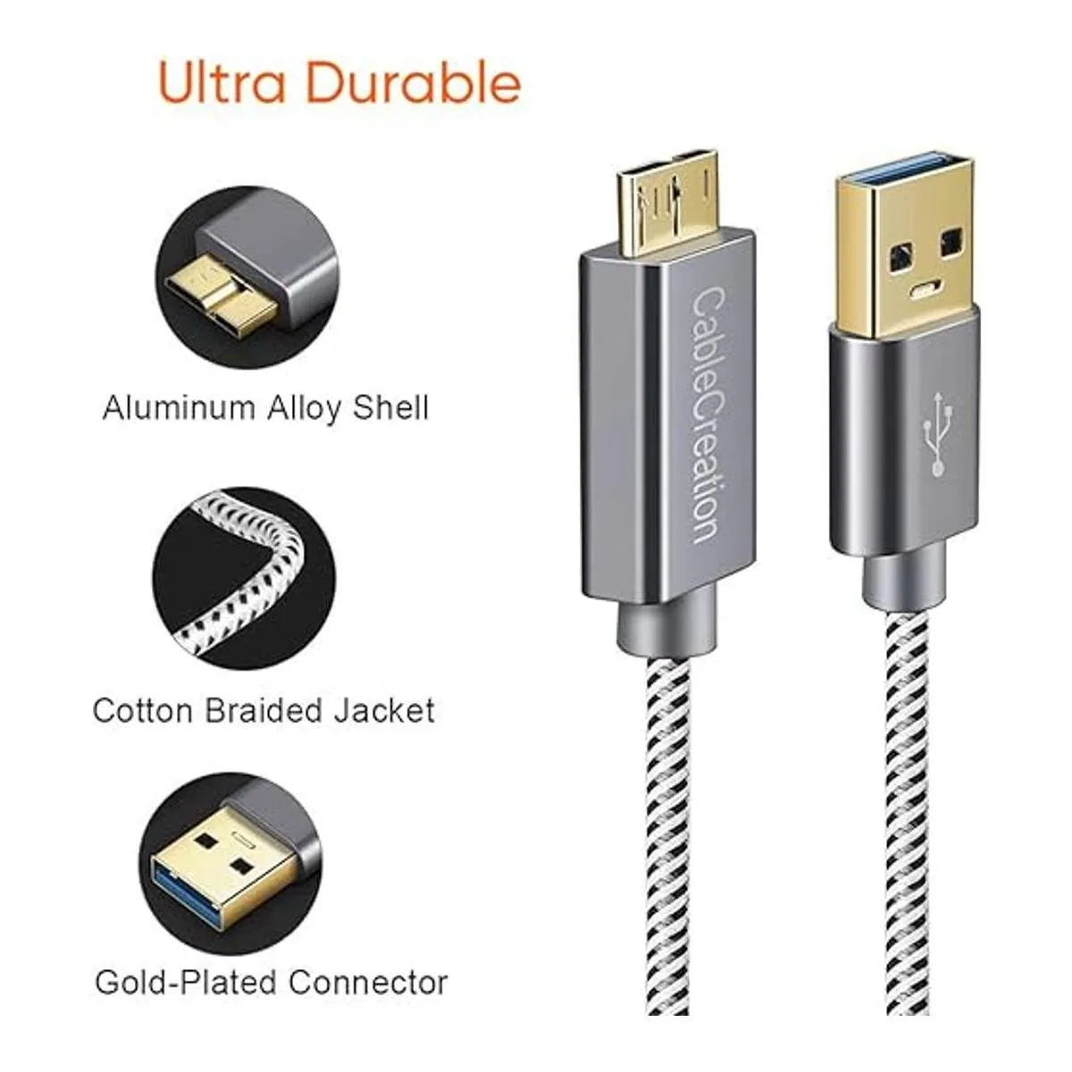 Alto rendimiento El cable USB 3.0 a micro USB soporta una velocidad máxima de 5 Gbps, 10 veces más rápido que USB 2.0, copia de seguridad y transfiere archivos grandes como imágenes y películas en cuestión de segundos. Permite fácilmente discos duros portátiles, no requiere fuente de alimentación externa. Compatible con tus dispositivos USB 2.0 existentes.