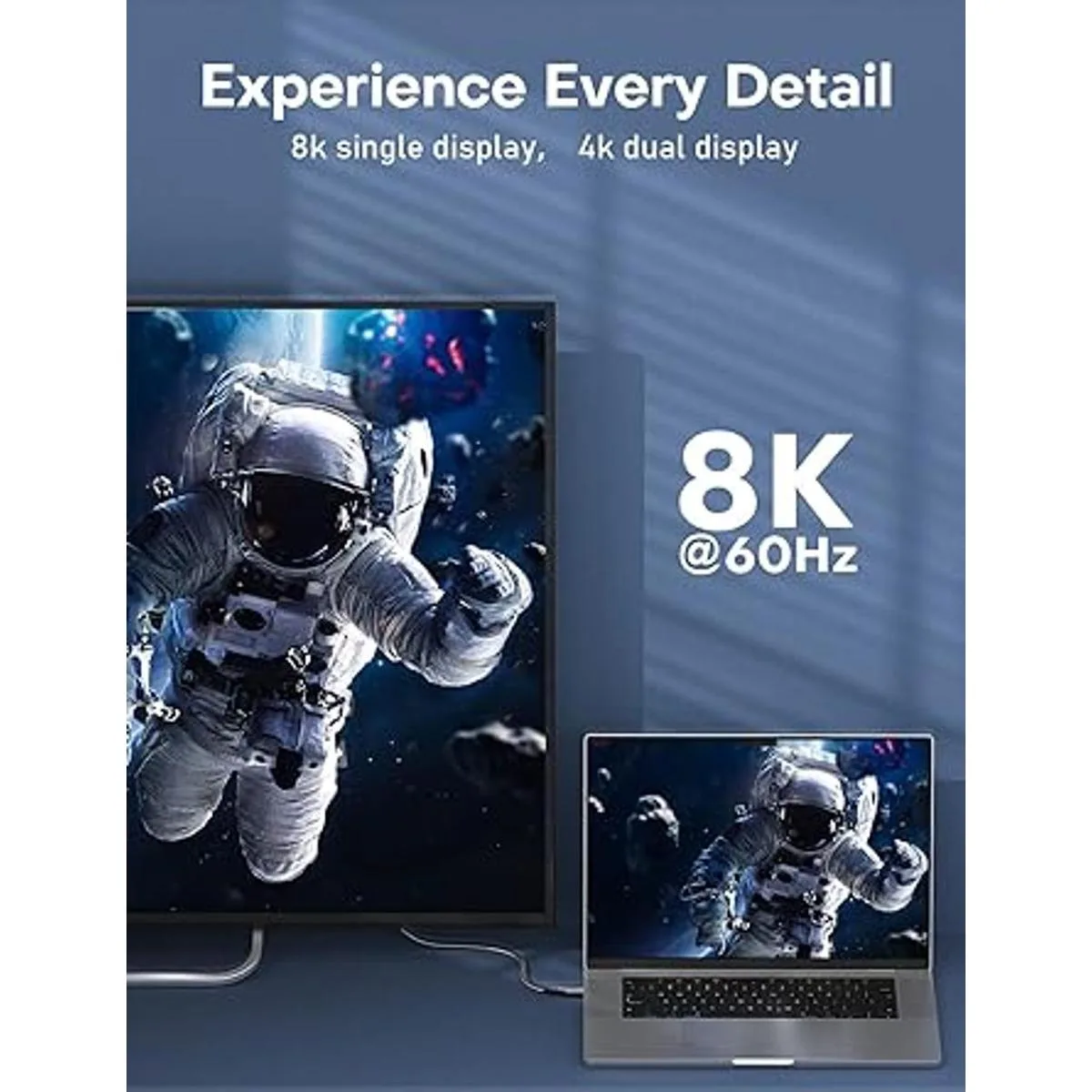 Pantalla HD de 8/5/4K Más opciones de pantalla: compatible con pantalla UHD, cable USB 4 de 240 W en ángulo recto compatible con dispositivos USBC con suficiente ancho de banda para conducir una pantalla 8K o dos pantallas 4K. Una solución Plug and Play compatible con cualquier Mac, iPad, MacBook, Chromebook, Surface tablet u otro dispositivo. PS: Asegúrate de que tu dispositivo sea compatible con el modo alternativo DisplayPort modo Alt.